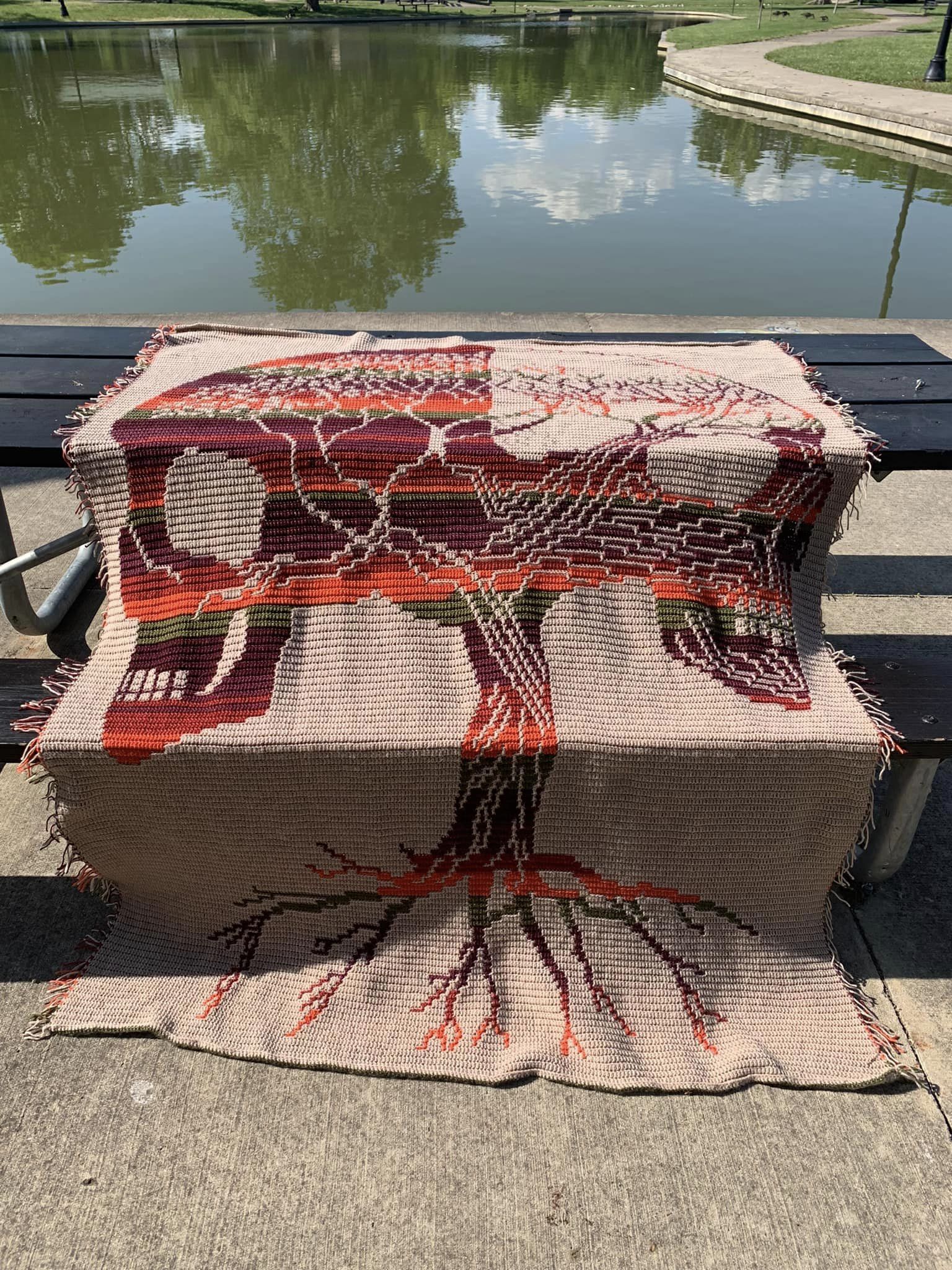 This website features overly mosaic crochet patterns, which use two basic crochet stitches to create a thick fabric featuring a picture or intricate design.
