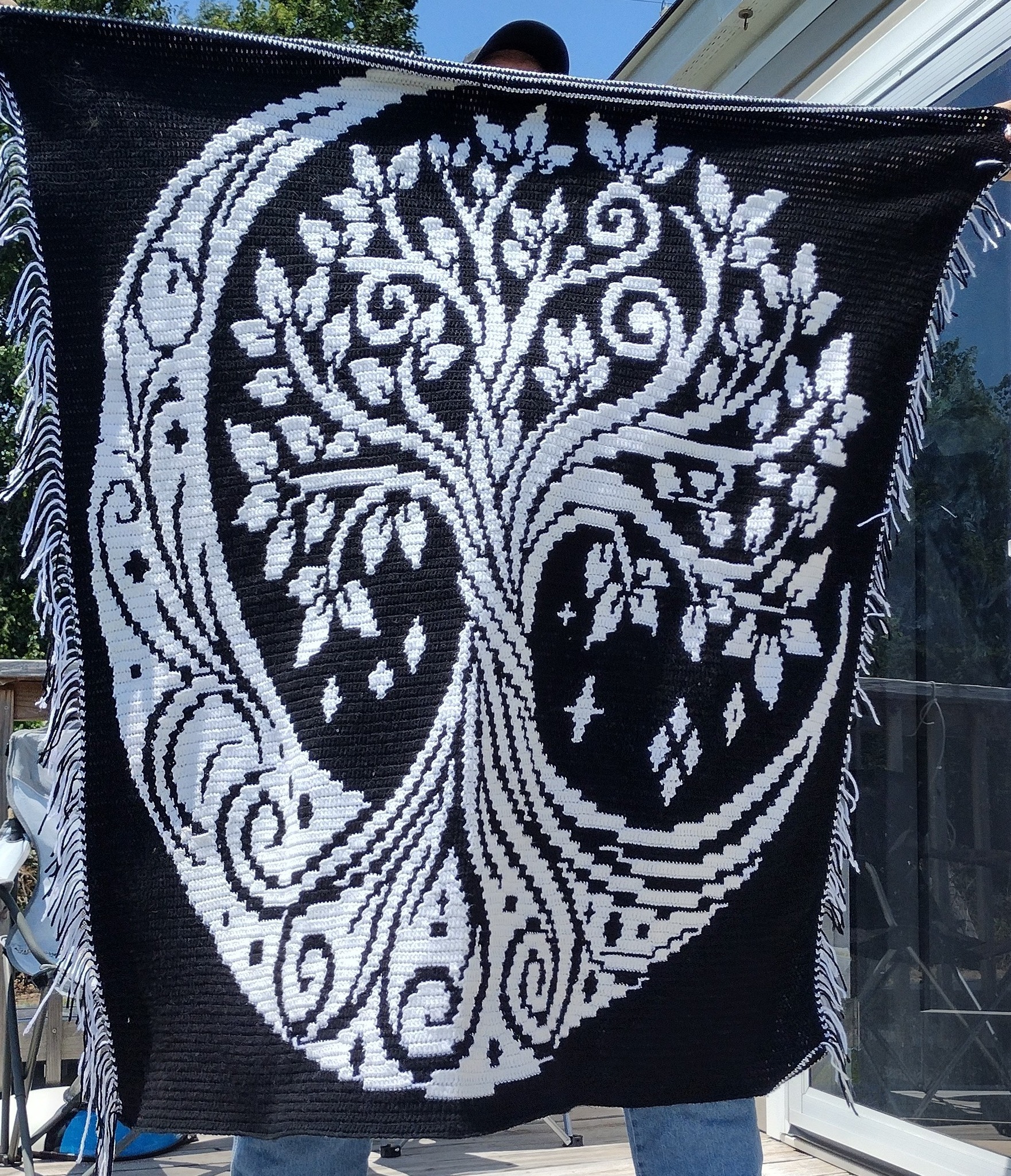 Bring nature’s magic into your home with the Lunar Tree of Life blanket, a stunning overlay mosaic crochet design that blends artistry with cozy craftsmanship. Featuring a vibrant stylized tree encircled by swirling motifs, this pattern creates a thick, textured fabric using just two basic stitches—perfect for beginners and seasoned crocheters alike.